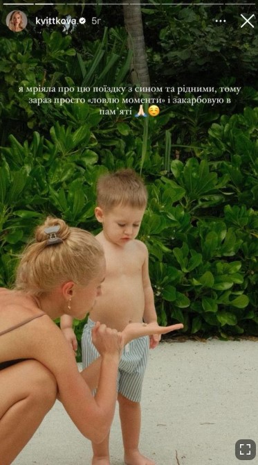 "Я мечтала об этой поездке с сыном и родными, поэтому сейчас просто ловлю моменты и оставляю их в памяти", - написала Квиткова.